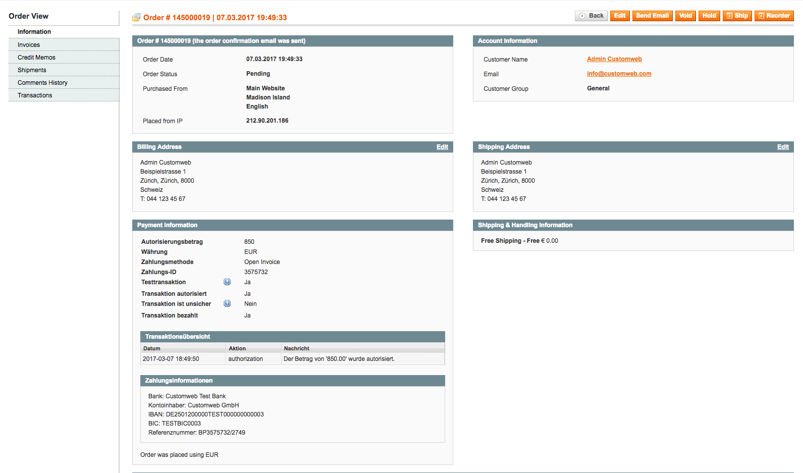 6.4.2.1Magento Order Confirmation (E-Mail)