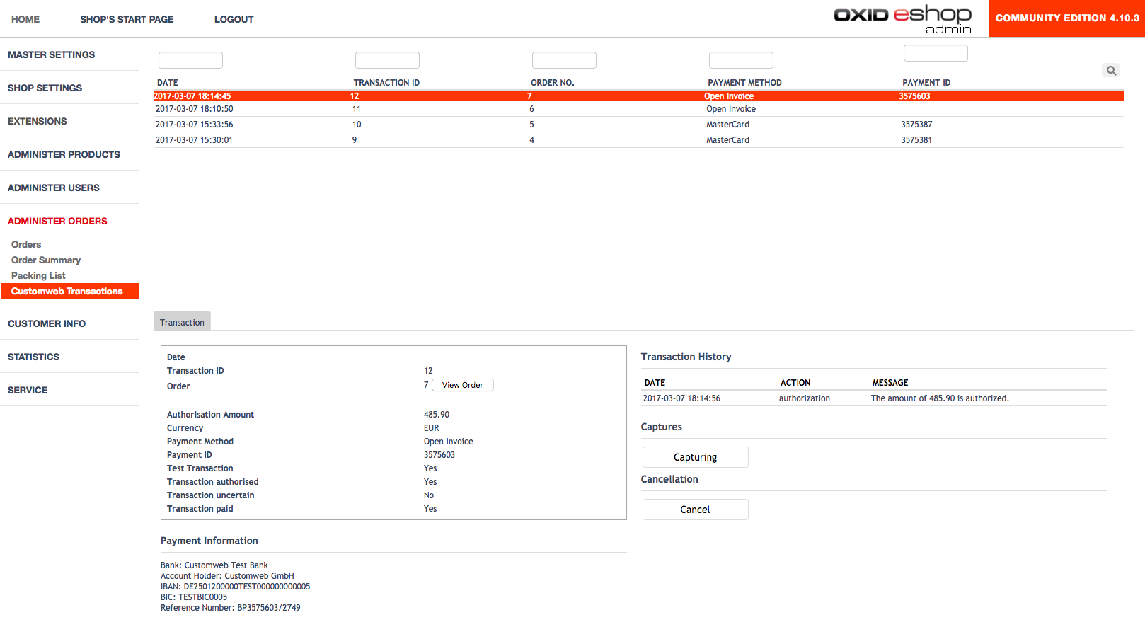 Die Transaktionsdetails können Sie im OXID unter Administer Orders > BetterPayment Transactions öffnen.