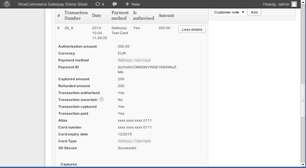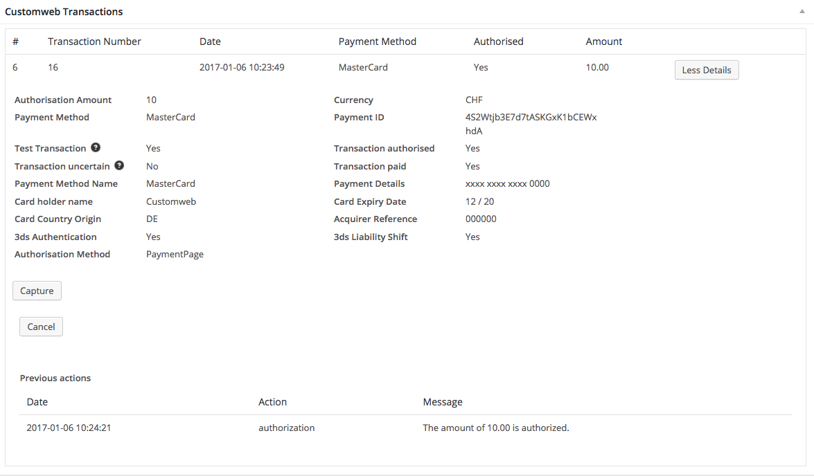 Hier können Sie den Button "More Details" anklicken um die Transaktionsdetails einzusehen sowie den Button Capturing anklicken um in folgenden Kontext zu gelangen.
