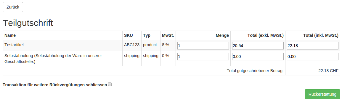 In order to refund orders, open the transaction information (cf. above). There you will find information on the transaction. Further below you will find an input field in which you can enter the amount you wish to refund. By clicking on "refund", the refund request will be transmitted to Worldline SIPS. You no longer need to log into the backend of Worldline SIPS.