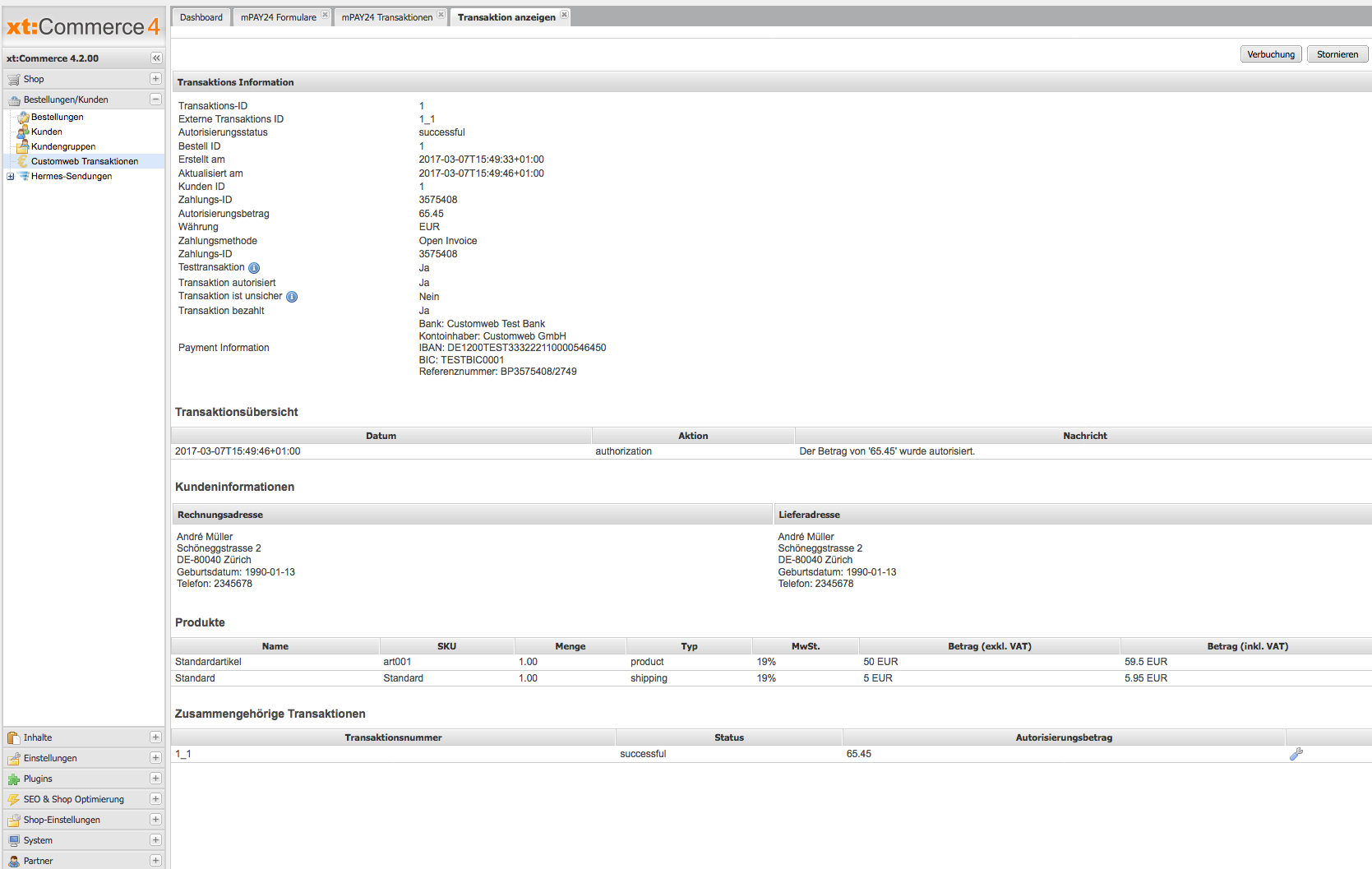 6.4Initiating payments in the xt:Commerce backend