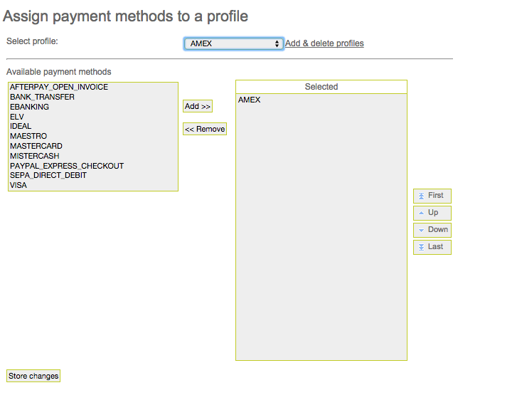 With the payment profile you can select a payment method for the payment page. To do so you need to create a profile for each payment method in the backend of DocData.