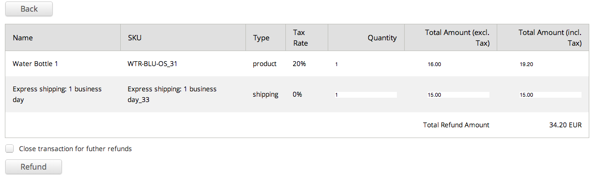 Via le input field, vous pouvez définir le montant que vous souhaitez rembourser. En cliquant Rembourser, la requête est transmise à PayFort et le montant est ajouté au solde de crédit du client.