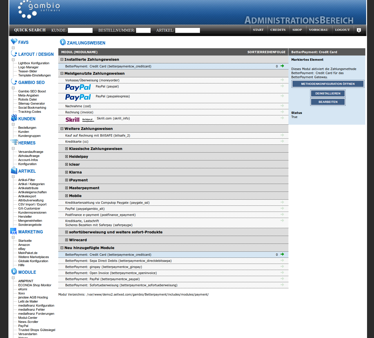 By buying Gambio Betterpayment Payment Module you acquire, in addition to the license, comprehensive support services. We are aware of the importance of payment processing for your shop. In order to guarantee its security, functionality and compatibility we constantly release updates and upgrades. You are granted free access to these improvements during the download period. In case you encounter problems during the integration or while using the modules, you can profit from free support per telephone or e-mail. Optionally we also offer an installation service including the entire configuration of the module in your shop and with Betterpayment; this service can also be ordered retroactively.