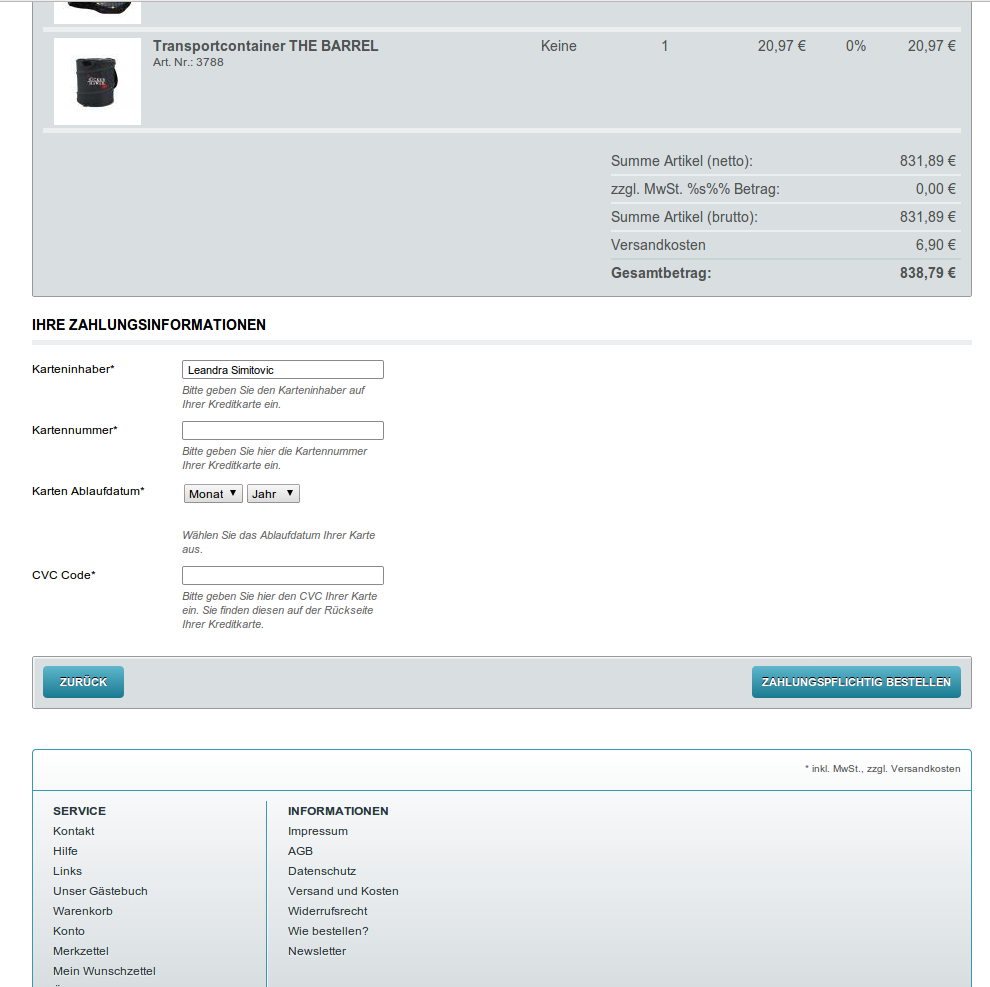 - Data Storage: Les données de la carte de crédit du client peuvent être enregistrées chez EMS e-Commerce Gateway et réutiliser pour un achat à un moment ultérieur