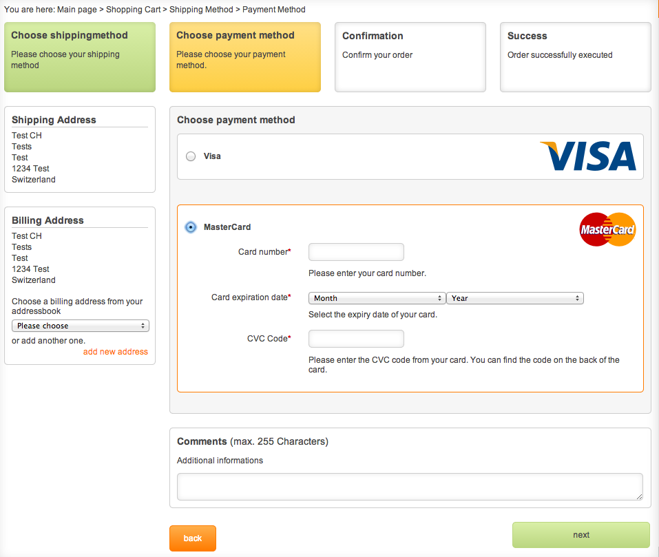 Nous garantissons le bon fonctionnement de ce module de raccordement à la solution de paiement de EMS e-Commerce Gateway. Vous recevez 12 mois d'accès à toutes les mises à jour et les changements de versions que nous publions (updates et upgrades). Avec le RSS-Feed soyez informé des dernières nouveautés. Vous pouvez ensuite télécharger cette version dans votre compte de client. En plus, vous recevez une année du support gratuit en cas de problèmes avec l'intégration.