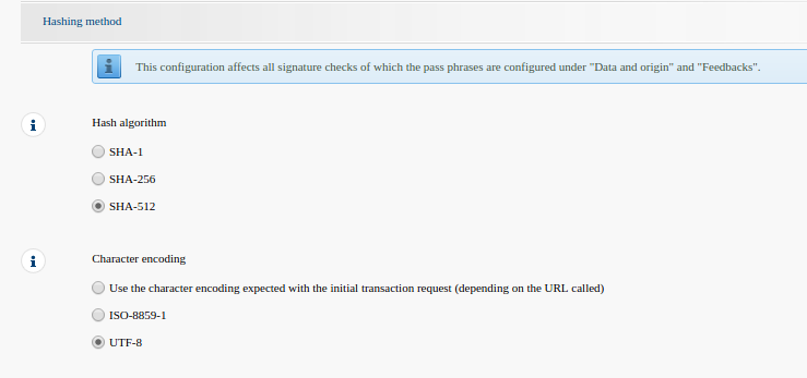 Les modules de paiement sellxed acceptent tous les modes de hachage de Viveum. Pour que le module fonctionne, il est important que les paramètres enregistrés dans Viveum correspondent à ceux enregistrés dans le backend de votre boutique.