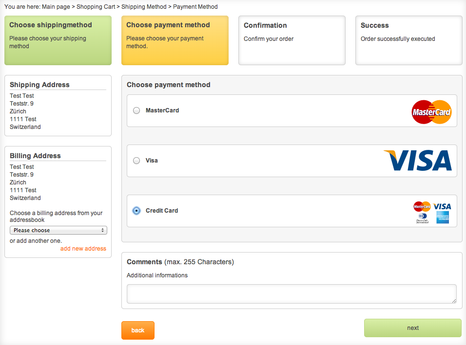 Offrez vos clients accès à une pluralité de nouvelles méthodes de paiement. Apart que les cartes de crédits conues (Visa, Master Card, etc), vous pouvez également intégrer cartes de débit (PostFinance, Maestro, etc), eWallets (PayPal, Moneybookers, etc) et les modes de paiement web-banking (PostFinance E-Finance, sofortüberweisung, ELV/giropay, iDeal, Mister Cash, etc.) Si-dessus, vous trouverez und liste détaillée des Offrez vos clients accès à une pluralité de nouvelles méthodes de paiement. Apart que les cartes de crédits conues (Visa, Master Card, etc), vous pouvez également intégrer cartes de débit (Maestro, etc), eWallets (PayPal etc) et les modes de paiement web-banking (ING HomePay, iDeal, Mister Cash, etc.) Si-dessus, vous trouverez und liste détaillée des méthodes de paiement supportées.